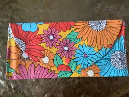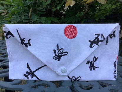 Petite trousse doublée à l'intérieur du même tissu éventails.