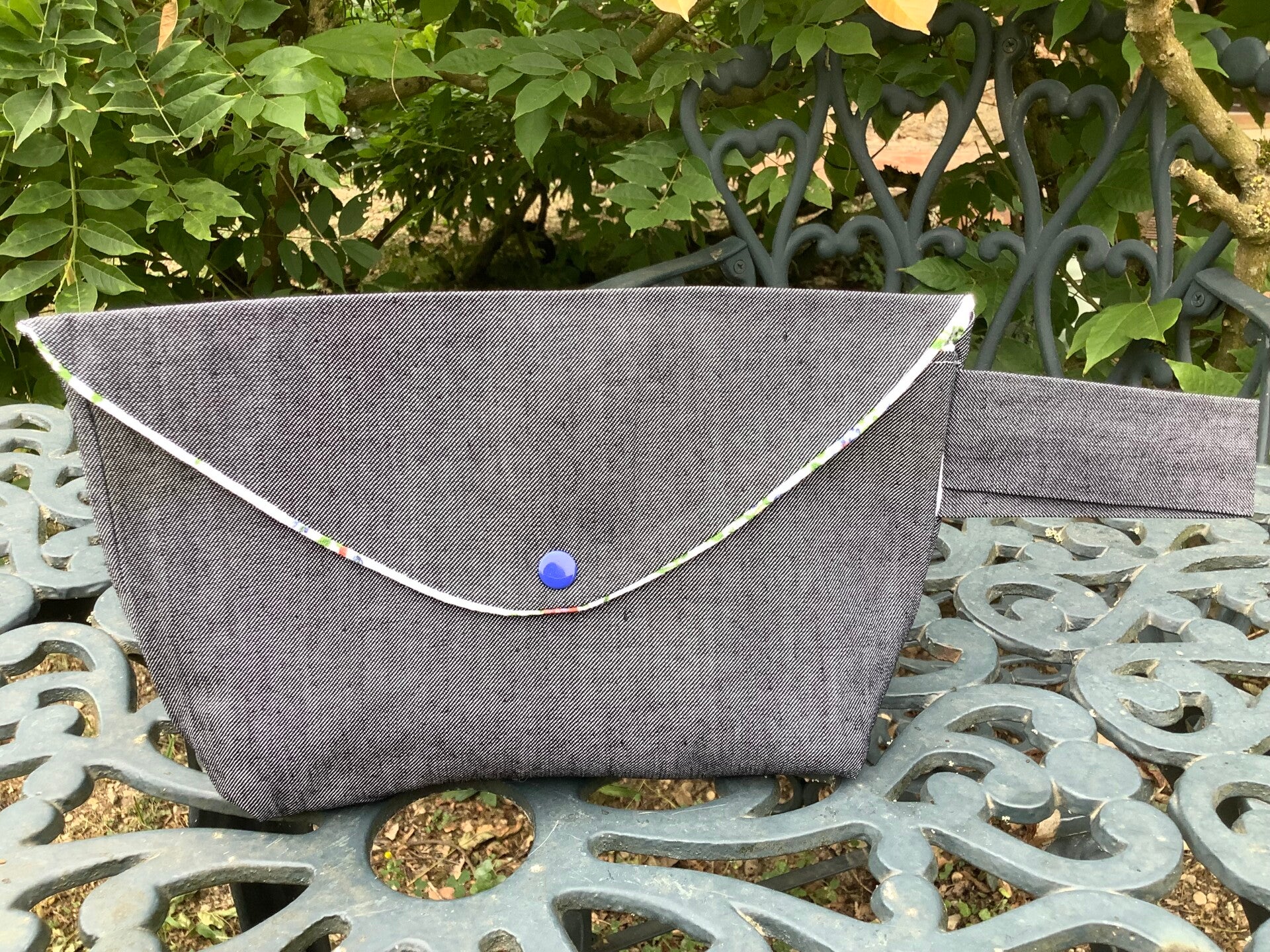 Fermeture par bouton pression bleu marine.