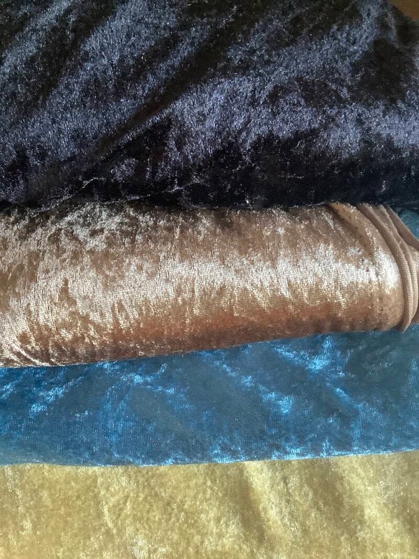 Soit en panne de velours noir, beige, bleu ou doré .