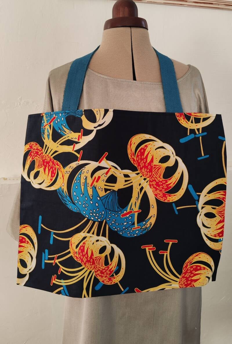 Grand motif sac léger avec anse en coton.45 x 35 cm